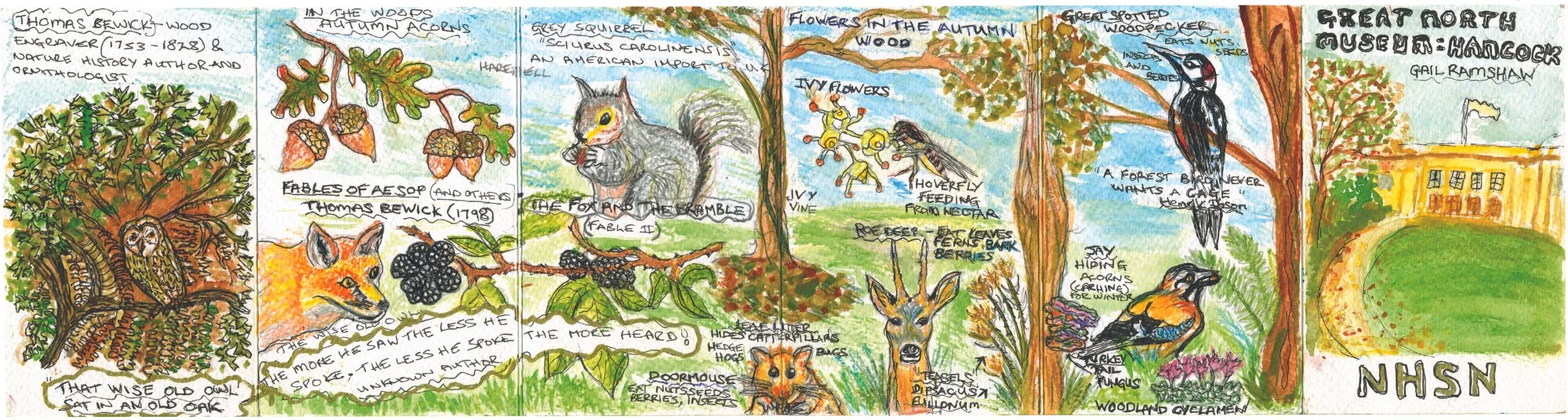 The concertina format of the chapbooks are really sympathetic to being created in different and individual ways, and each artist was able to start with small drawings building up the storylines over the course of the three workshops resulting in a variety of narratives. On completion, each of the chapbooks will be printed and then accessioned into the archives to sit alongside historic books such as Charles Darwin’s Evolution of Species and Sparky the budgies’ vocabulary list.